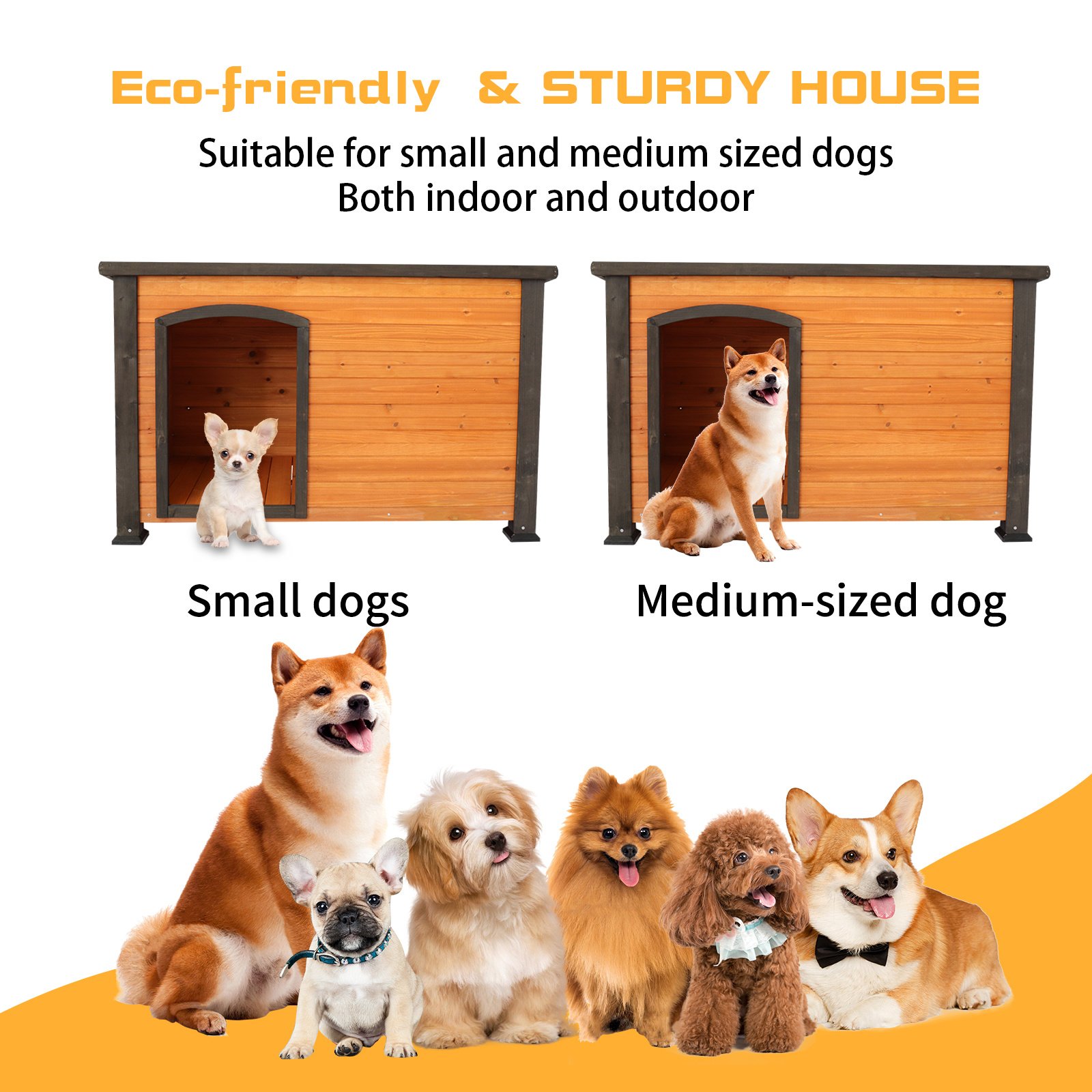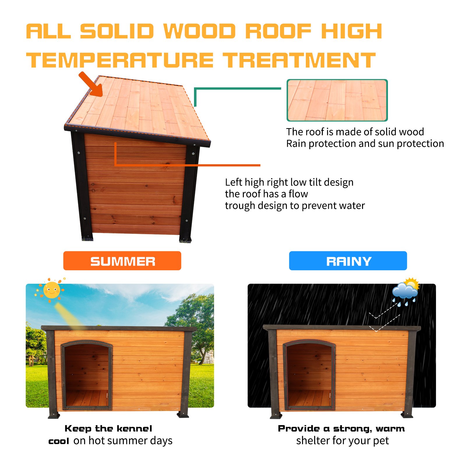 Dog House Outdoor & Indoor Wooden Dog Kennel for Winter with Raised Feet Weatherproof for Large Dogs(Gold red and black)44.5"*26.4"*27.8"(M)